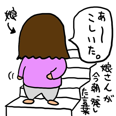 今朝、保育園の階段の途中で止まり、「あぁ、腰いた」って娘さんが言うたそうです。