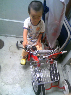 先日、じいちゃんにチャリンコ買ってもらって大変喜んでいます