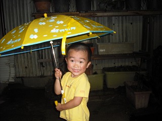 途中で雨が降ってきたので傘をさしてBBQコンロを守ってくれました