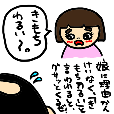 娘から・・・ 2014年5月19日 最終更新日時 : 2014年5月19日 toru-chiro 娘さんももうすぐ3歳になりますので、今はいろいろしゃべってくれます。 いろんな言葉を知ってます。 先日、気持ち悪い~。やめて~っていわれました 笑 気持ち悪いってどんなんかわかるんやと思いました。 けど気持ち悪いって・・・ぐさっときたね 笑 FacebookXBlueskyHatenaCopy