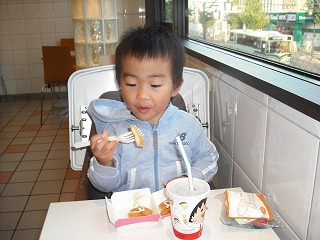 水曜は朝6時30分におきて息子さんと2人で朝マックにいきました