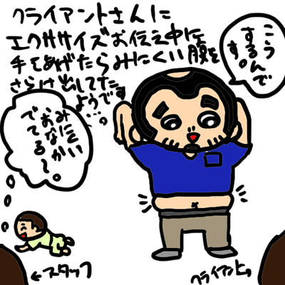 お腹でてる~。 2014年9月11日 最終更新日時 : 2014年9月11日 toru-chiro 先日、クライアントさんにエクササイズをお伝えしてたら、手を上げたら服も上がり、醜いお腹をさらけだしたようです(泣) あとからスタッフに言われました・・・。 醜い腹がでてたと・・・。 7月から肉体改造中ですので、見えても恥ずかしくないようなお腹にしないと・・・・爆 見えてしまったクライアントさん申し訳ござませんでしたm(__)m FacebookXBlueskyHatenaCopy