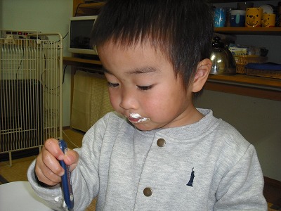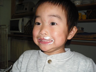 口周りにつけすぎ・・・・・息子さんも僕も生クリーム大好きです