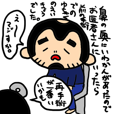 でも左の鼻の上顎洞は大丈夫でしたが、篩骨洞だったかがカメラがはいらないくらい通りがせばまってました。