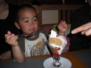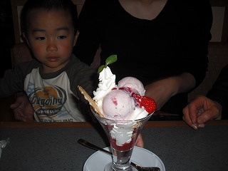 お昼ご飯を食べに行ってもまだご機嫌斜めでしたらイチゴパフェでご機嫌さんです