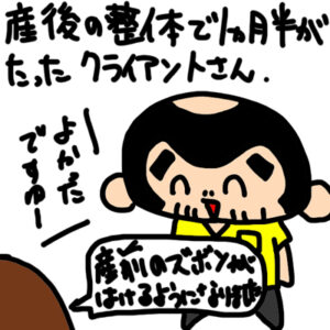 産後3ヶ月からお子様と一緒にご来院中のクライアントさん。 1ヵ月半が経ちました。 元々の尾てい骨の痛みも出なくなりました。 そして毎日お伝えした姿勢や歩き方も実践して頂き、エクササイズもほぼ毎日された結果プラス食事も気を […]