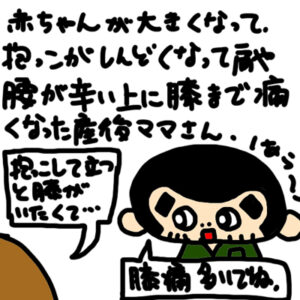 産後のママさんで、赤ちゃんがすくすくと成長するにつれて抱っこが大変になってきます。 産後のママさんによって、時期や症状の出方は様々ですが、膝痛は結構多い症状です。 産後すぐはないですが、赤ちゃんも重たくなり、しゃがんで抱 […]