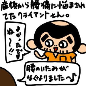 産後から腰が痛いというママさんは大変多いです。 また腰と言っても実際には腰より骨盤や股関節が痛いというケースも多いんですね。 ひっくるめて腰が痛いという場合のママさんが圧倒的です。 抱っこで腰が痛い、寝返りで痛い、起き上 […]