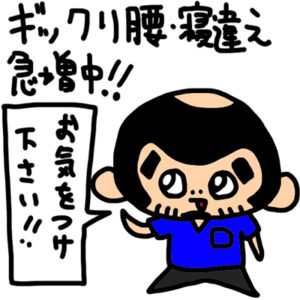 寒くなってから腰痛になった方、腰痛が酷くなった方が多かったです。 普段から腰を痛めないように気を付けて生活されてるかたもなってましたが、やはり疲労をためてたり固まってるとなかなかケアは難しいです。 なので、しんどくなる前 […]