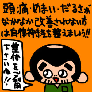 頭痛、めまい、だるさがずっと続いてて改善しない場合は整体もご利用くださいね。 自律神経を整体で整えていくのも効果的です。 もちろん、その他も気をつけないといけません。 忙しくて、しんどい状態でやる気もでなかったり、整体へ […]
