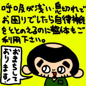 呼吸が浅い・息苦しい・息切れ・動悸などでお困りでしたら自律神経を整えるのに整体もご利用してみてはいかがでしょうか? 自律神経の乱れは上記の症状はでます。 病院で検査して薬飲んでてもずっと調子が悪いようでしたら一度整体を受 […]