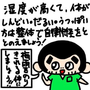 湿度が高いと熱が体にこもってしまいます。 体温調整ができないんですね。 なので、体がだるくなったり、気分が落ち込みやすくなったり、胃にもくるので食欲低下したり・・・。 これって自律神経の問題ですよね。 梅雨時期など雨の日 […]