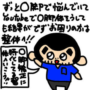 O脚でお悩みの方は、まずはネットでO脚改善の方法を調べます。 そしてyoutubeでO脚改善の体操(エクササイズ)をみつけます。 それを実践されます。 しかし、何も変化がなく諦めます。 そこからO脚矯正の整体院を探されま […]
