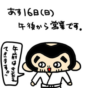 明日は午後から営業となります。 よろしくお願いいたします。 午前中は柔術できたえてきます。 午後の空きはあと少しです。 ご希望の方はお早めにどうぞ~。 ☆☆☆☆☆☆☆☆☆☆☆☆☆☆☆☆ 《産後骨盤矯正、自律神経調整、O脚 […]
