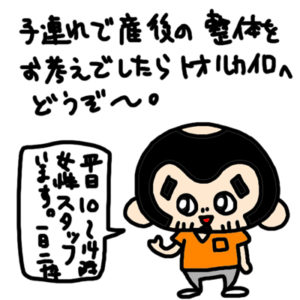 京都でお子様連れで産後の整体を受けたいママさんはお気軽にお問い合わせくださいね! 旦那さんの休みに合わせていらっしゃる方や、おばあちゃんにあずけていらっしゃる方はいいのですが、誰にもお子さんみてもらえない方がいて整体へ行 […]