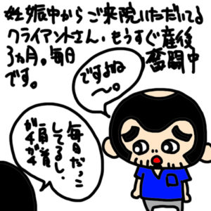 妊娠中からご来院いただいてるクライアントさん。 もうすぐ3カ月です。 毎日育児に奮闘されてて肩こり、首コリ、腰痛。 お伝えしてる体操は・・・できていません。 はい、実際に産後でお伝えしてる色々なエクササイズをお家でできて […]