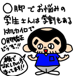 O脚でお悩みの学生さんは学割もあるトオルカイロへどうぞ! 数回でO脚が改善なんていうのはO脚の程度によります。 ほとんどの方は回数かかりますし、矯正が終わってもずっと姿勢などはやり続けないといけませんので、O脚矯正受けた […]
