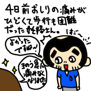 妊娠8ヶ月でお尻の痛みがきつくて歩くのも動作も辛い妊婦さん。 前回の施術のあとも痛みは続いてたのですが、3日後の昨日の朝に痛みがスパンとなくなったそうです。 今日も大丈夫そうで、チェックしたらまだ腰浮かすのはでてました。 […]