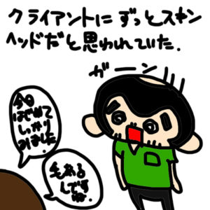 もう2年来ていただいてるクライアントさん。 ご主人の薄毛の話から僕のハゲの話になり、僕をぱっとしかみてなかったので、髪の毛がないとずっと思ってらっしゃったようです 爆 「髪の毛あるんですね 笑」 「スキンヘッドだと思って […]