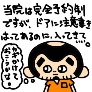 当院は完全予約制となっております。 なので、ご予約の方と配達業者さんのみが入室できます。 それ以外の方は入室禁止なんです。 入口にも注意書きがあるんですが、無視して入ってくる方がたまにいらっしゃいます。 当院への問い合わ […]
