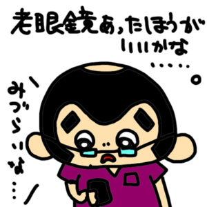 ついにきたか・・・・。 どうも見づらい・・・。 スマホもいつの間にか離してる・・・。 ビックリマンシールみる時も離してる・・・。 近づけるとぼやける。 レーシックで近視の手術をしてもう15年ですか。 視力は1.2くらいで […]