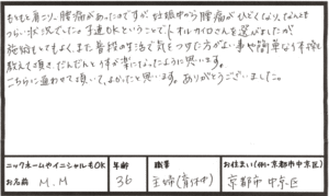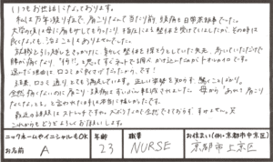 マタニティ整体、自律神経失調症(20代女性 主婦 京都府亀岡市)307
